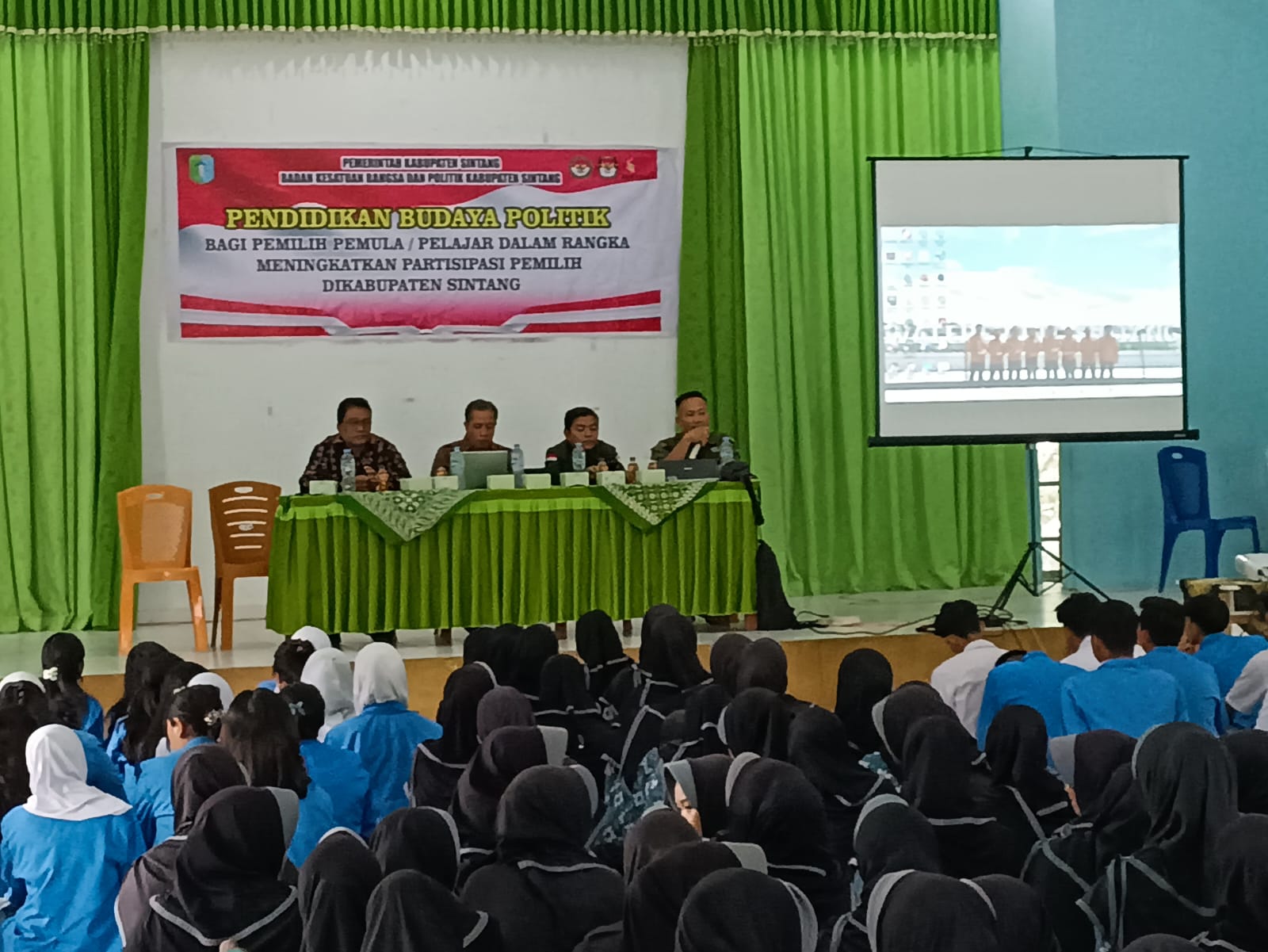 SINTANG – Badan Kesatuan Bangsa dan Politik Kabupaten Sintang menyelenggarakan Pendidikan Budaya Politik Bagi Pemilih Pemula Dalam Rangka Meningkatkan Partisipasi Pemilih di Kabupaten Sintang pada Pemilihan Bupati dan Wakil Bupati Sintang Tahun 2024 di Aula MAN 1 Sintang pada Kamis, 14 November 2024.