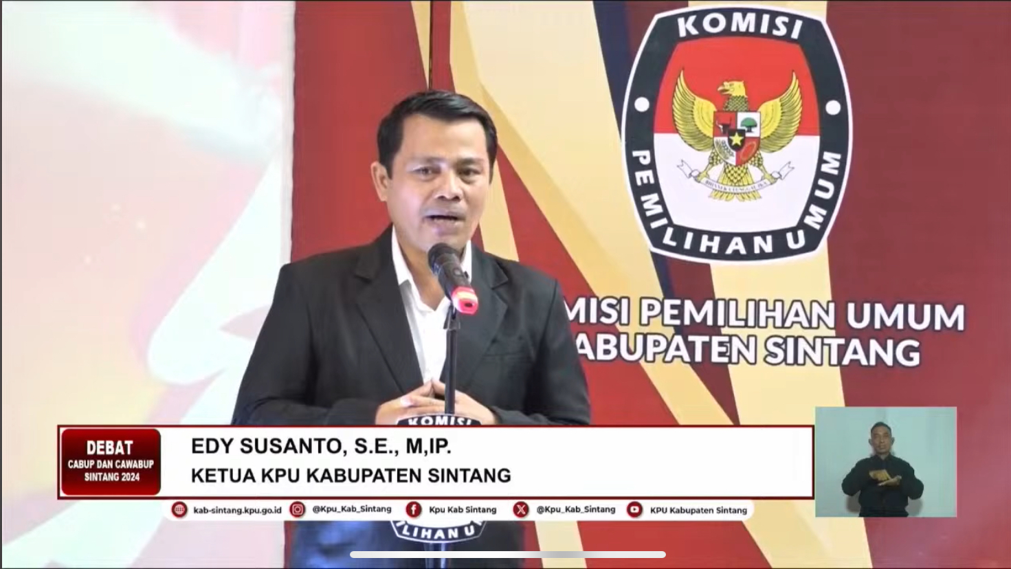 SINTANG – Ketua Komisi Pemilihan Umum (KPU) Kabupaten Sintang, Edy Susanto mengajak seluruh masyarakat untuk menyambut Pemilihan Kepala Daerah (Pilkada) 2024 dengan penuh kegembiraan, menjauhkan diri dari hoaks, dan menghindari ujaran kebencian. Pesan tersebut disampaikan Edy dalam pembukaan debat pasangan calon bupati dan wakil bupati Sintang 2024.
